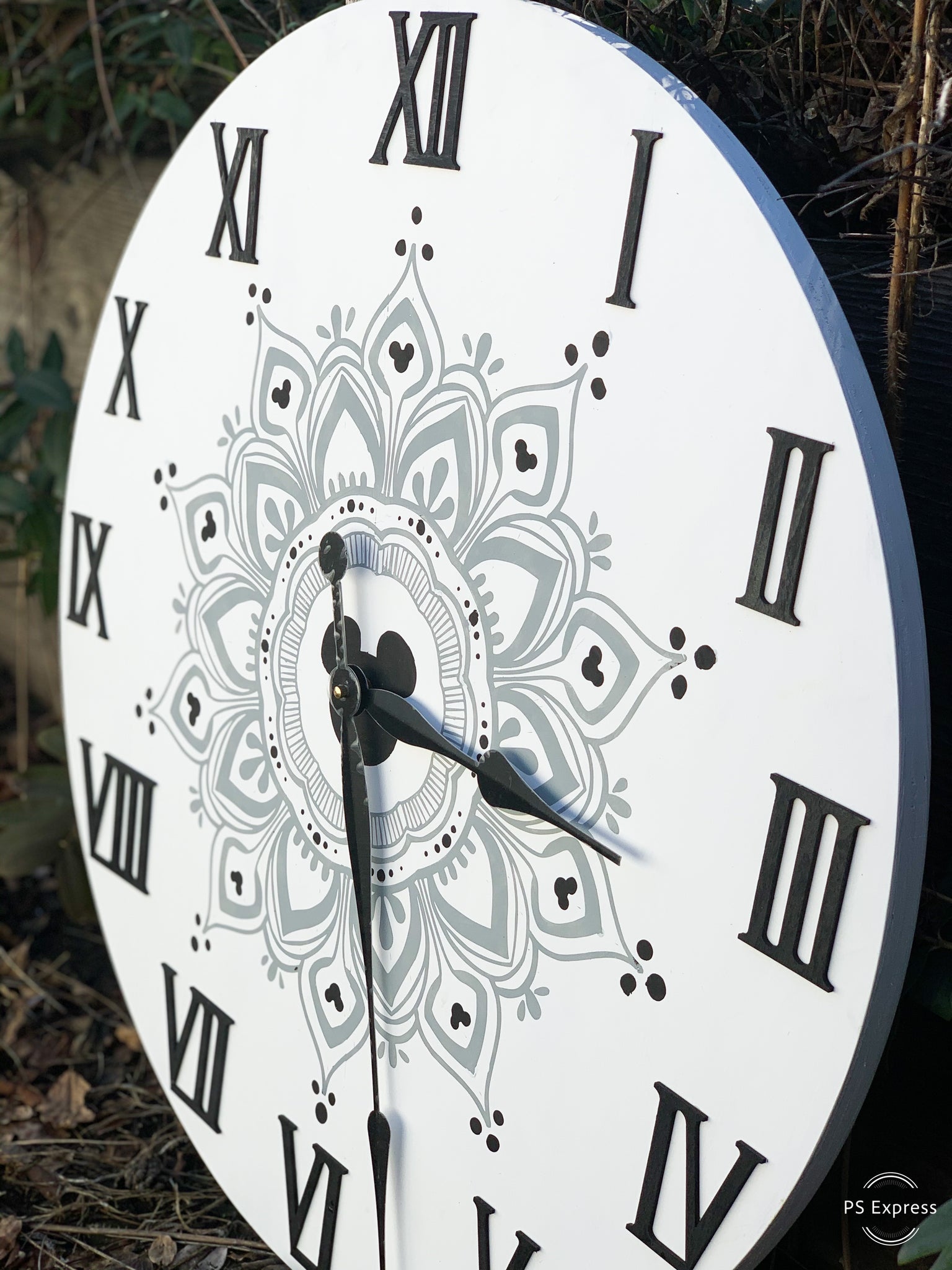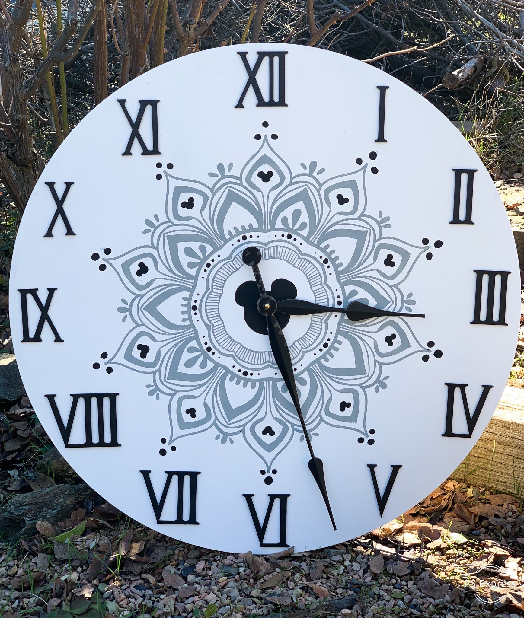 This beautiful Mandala Mouse Clock has been on our request list since we rolled out our very own design last summer...and It’s finally here!!! Our 26’’ CUSTOM Mandala clock is made from hardwood 3/4 inch material and features our very own Mouse lovers Mandala...in whatever colors you choose!! That’s right...our Custom Mandala Mouse Clock allows you to choose everything about your clock so that you can be certain it will go perfectly with your space!! This clock comes complete with 12 inch black metal clock hands and a clock mechanism that slides perfectly into a precut square in the back of the clock. And it wouldn’t be complete without our beautiful 3D Roman numerals (which you can also choose the color of) to complete this classy piece of Mouse inspired magic. This purchase of a lifetime is one that you won’t regret...and it’s the perfect way to display that hidden Mouse magic we all love so much.